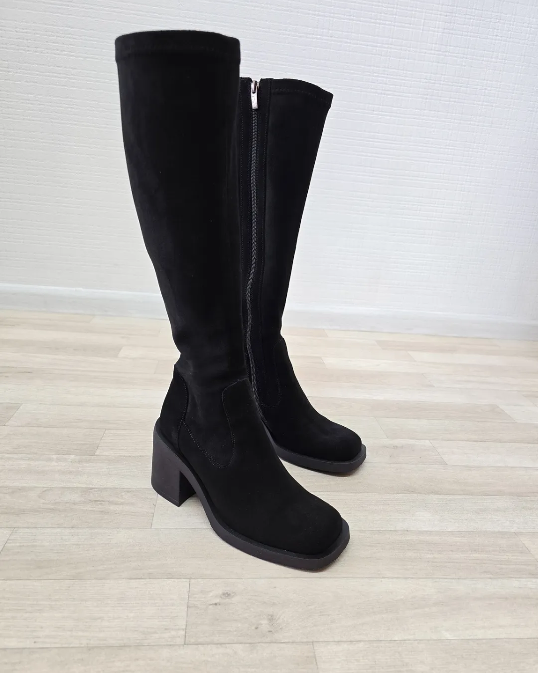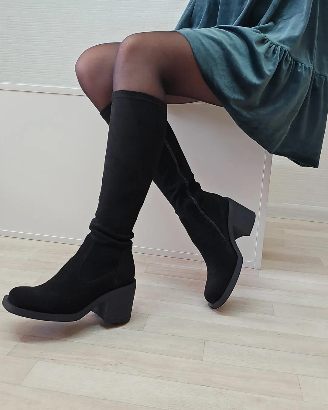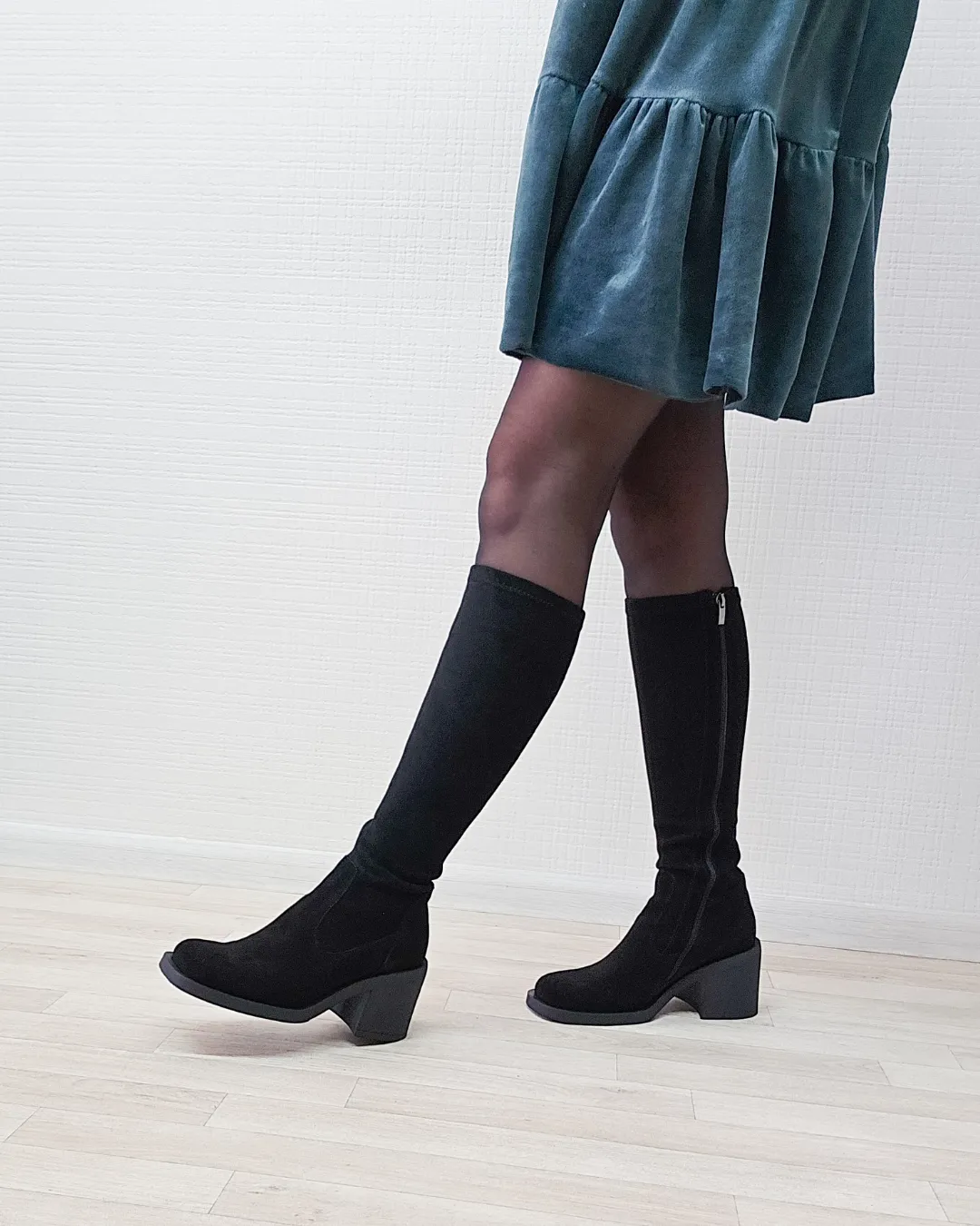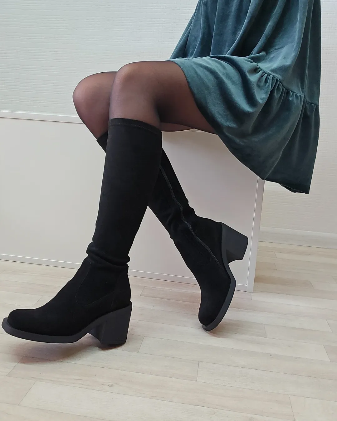 Stilingi ir elegantiški, juodi ilgaauliai, pagaminti iš natūralios verstos odos, aulo dalis elastingas audinys (žomšas), kad dar gražiau pristaikytų prie jūsų kojos – puikus pasirinkimas moterims vertinančioms klasikinį įvaizdį. Subtilus, patogaus aukščio kulniukas suteikia patogumo vaikštant.